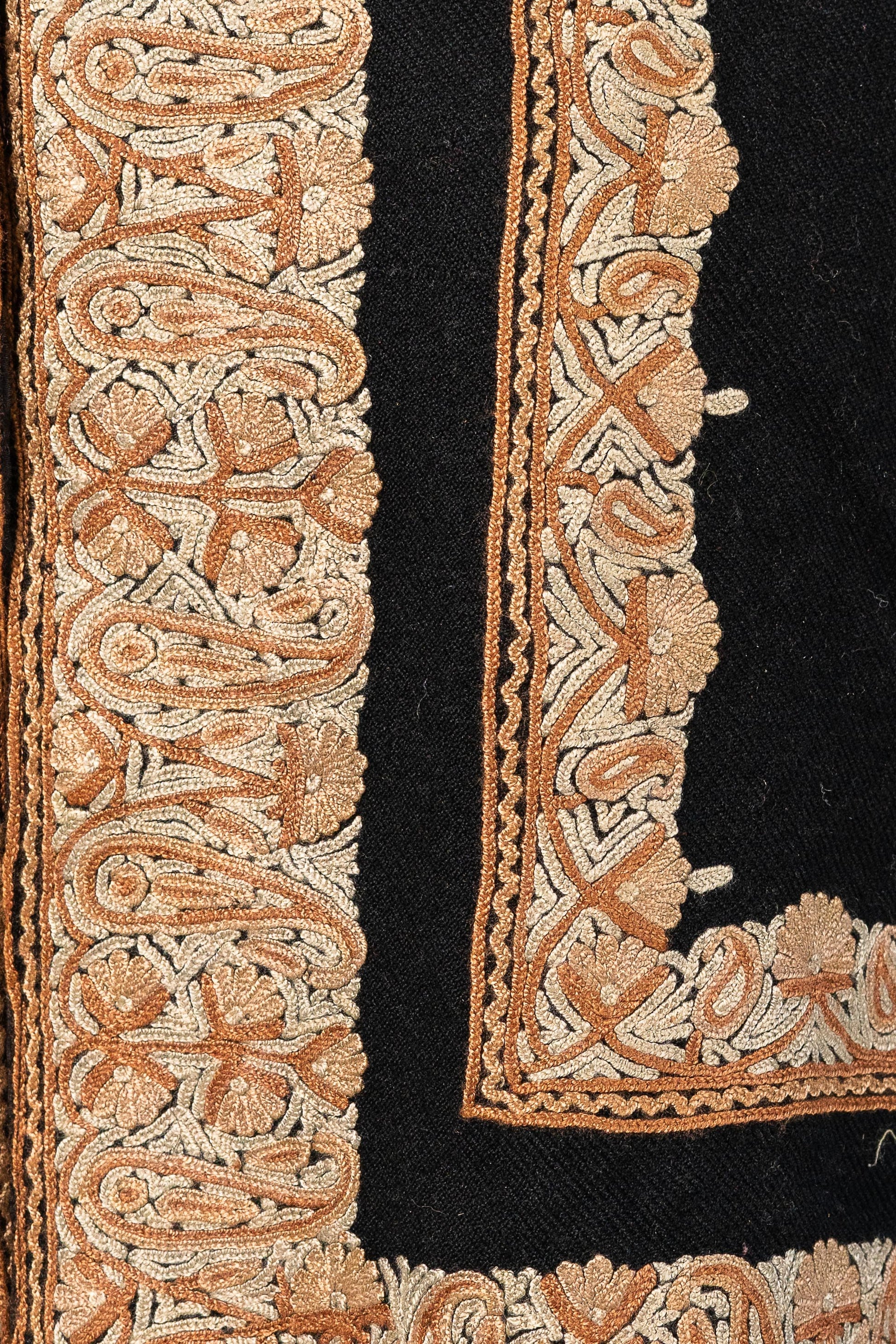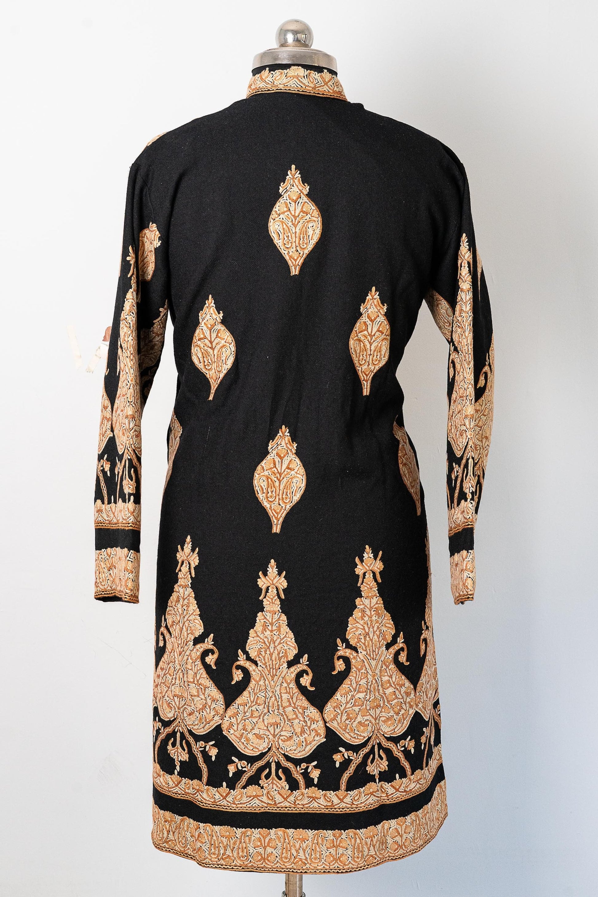Embrace the royal legacy of Kashmir with the "Noor-e-Shehzaadi," a jacket that intricately showcases the revered craft of hand aari embroidery. The luxurious gold-threaded patterns on this black jacket are inspired by the historical grandeur of Kashmiri nobility.