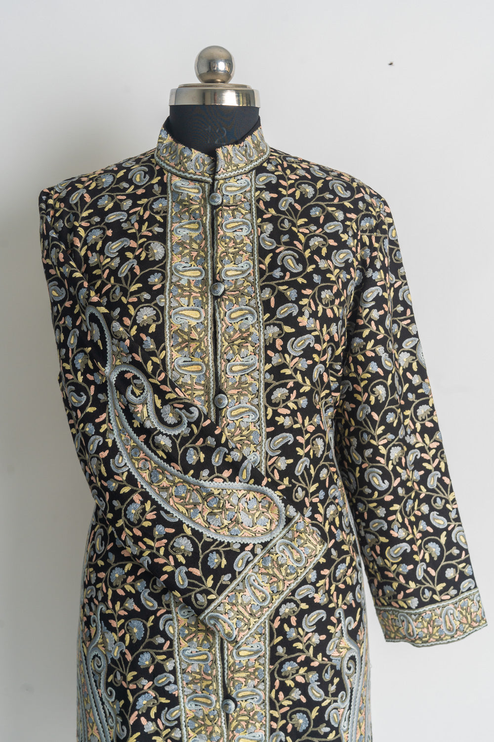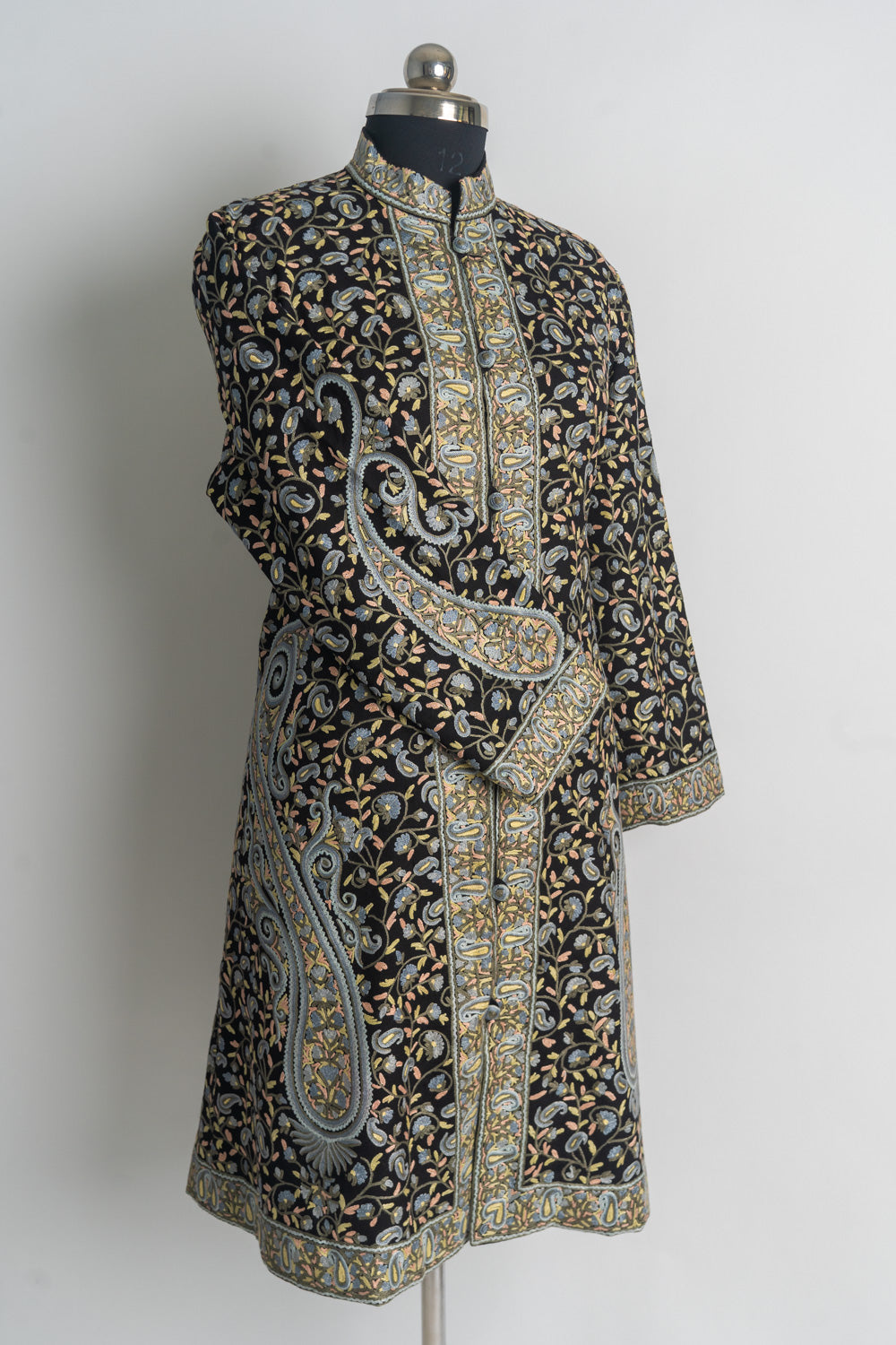 The "Siyah Gulzar" is not merely a piece of clothing but a cultural artifact, offering its wearer a connection to the rich tapestry of Kashmiri traditions. This jacket is a statement of elegance, a conversation starter, and a cherished addition to the wardrobe of any connoisseur of fine, artisanal fashion.
