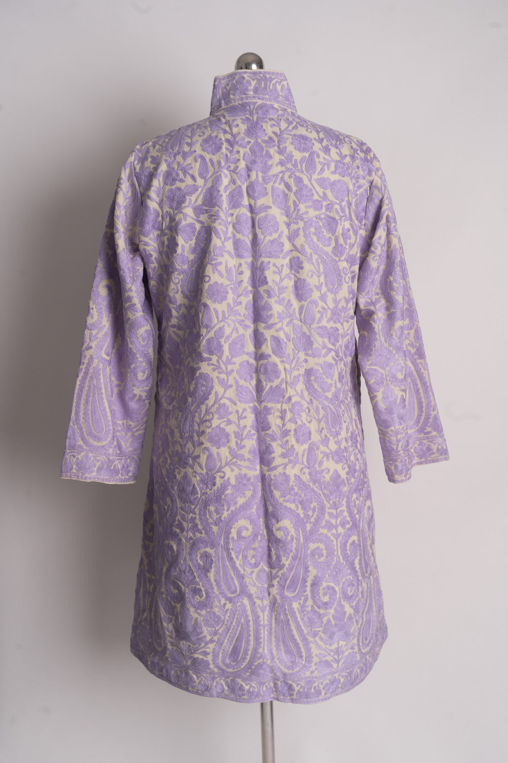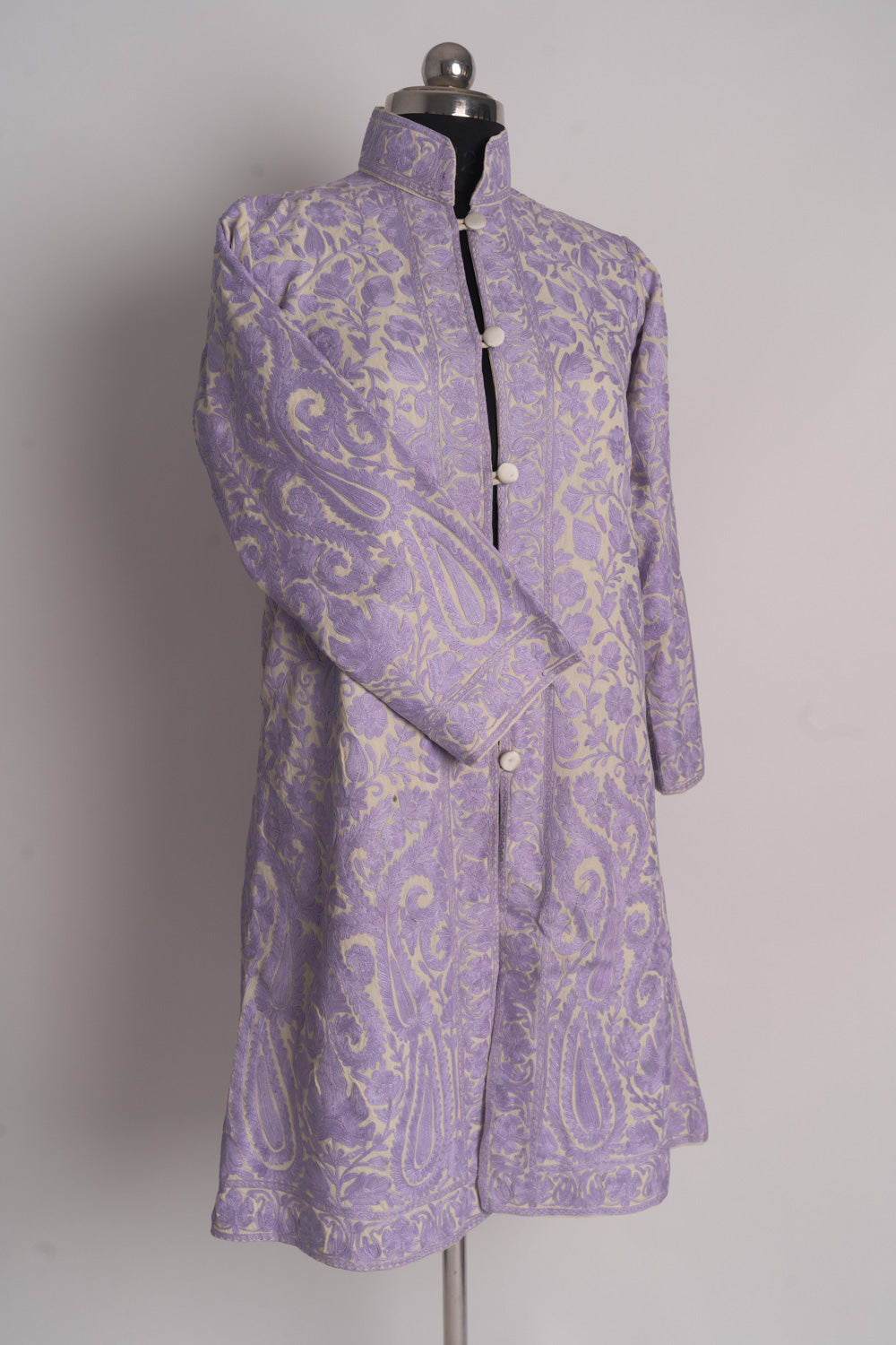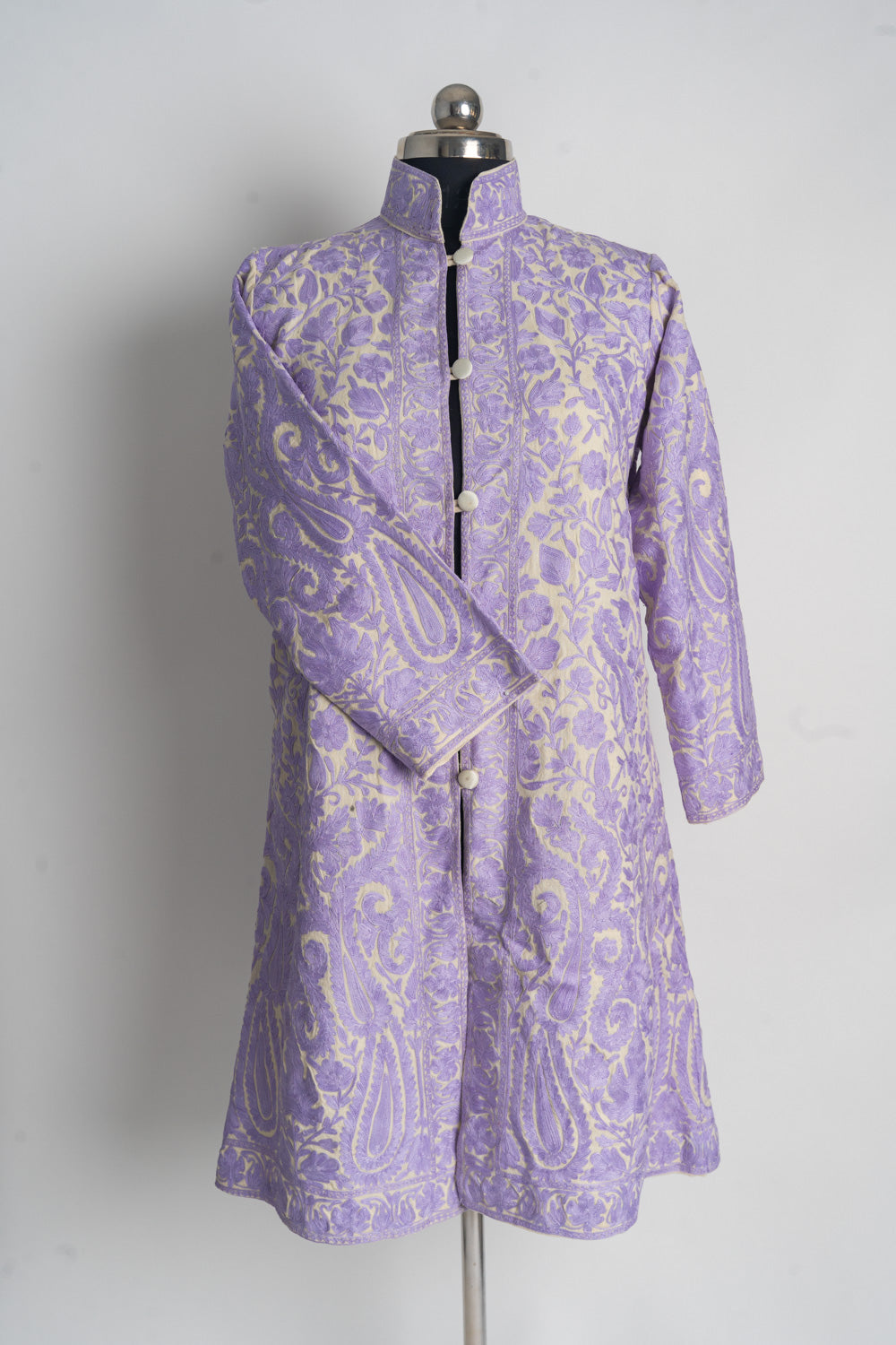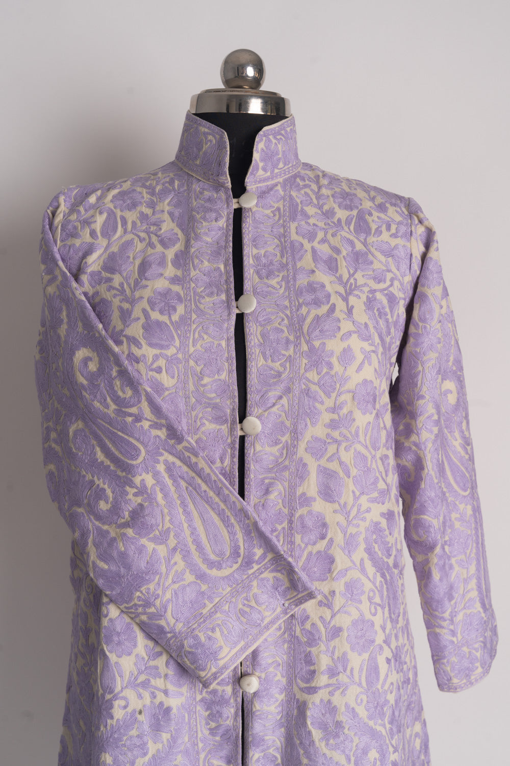 Ethereal Lilac and Cream Kashmiri Aari Embroidery Long Jacket