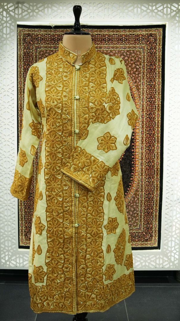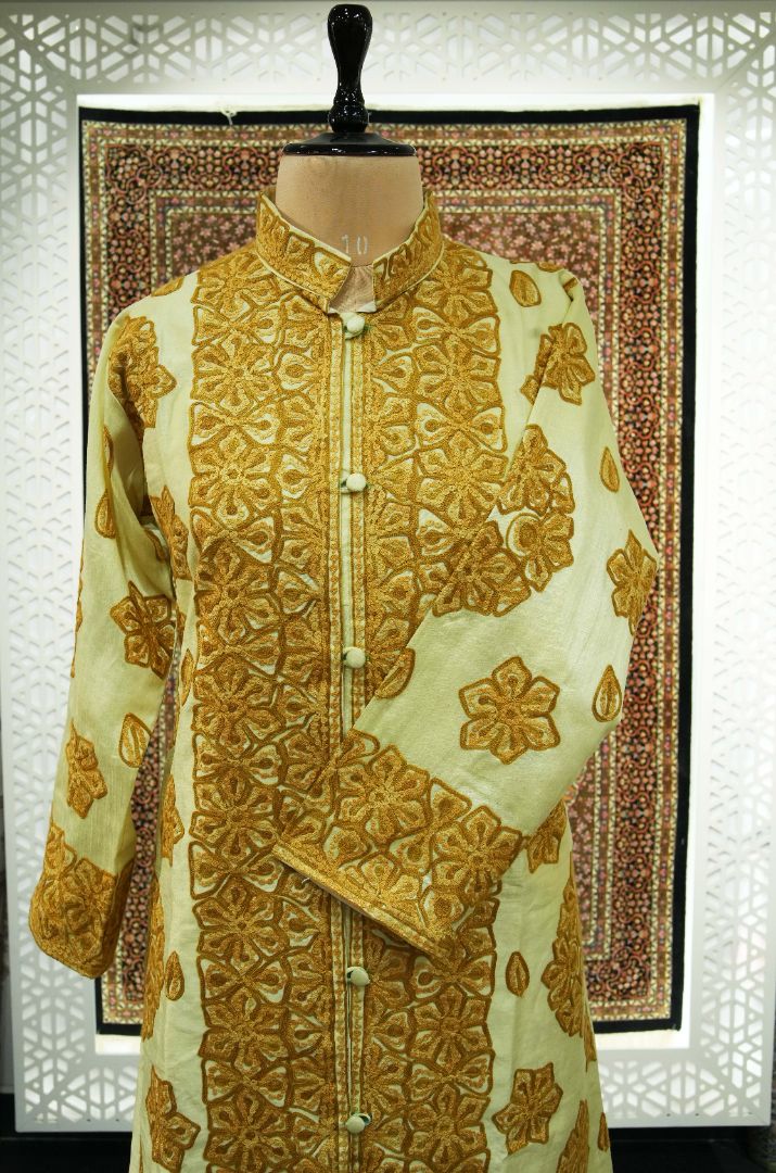Golden Majesty: Kashmiri Aari Embroidery Long Jacket