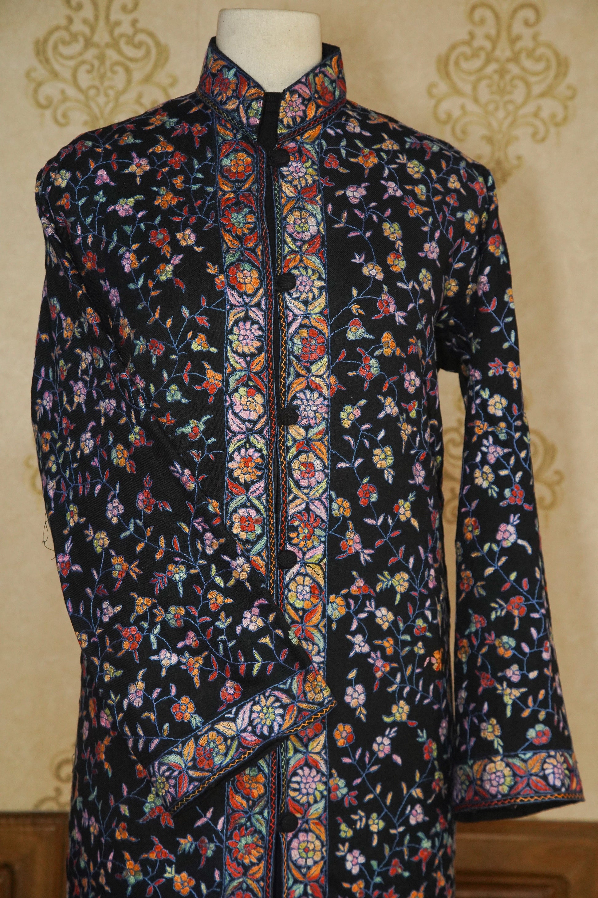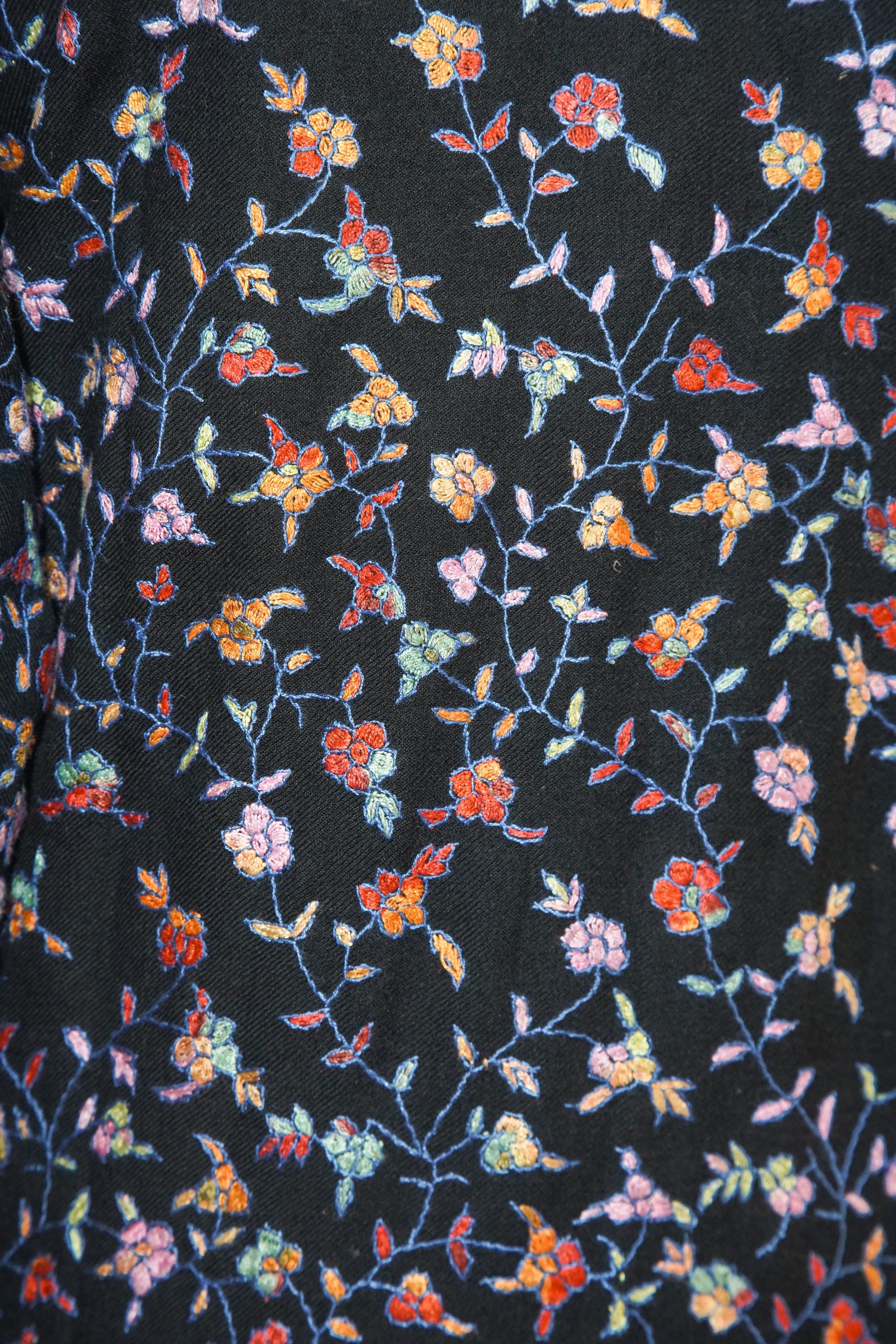The "Bagh-e-Bahar" is more than an item of clothing; it is a canvas of night where each stitch is a burst of color, a flower in the eternal garden of Kashmir. This sozni embroidered jacket carries within its threads a whole season of blossoms, reflecting the vibrant life that stirs with the thaw of spring in the valley.