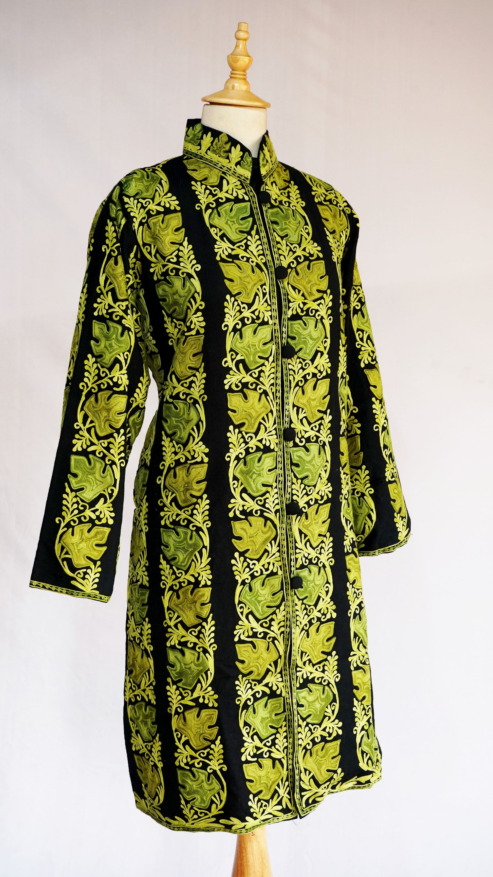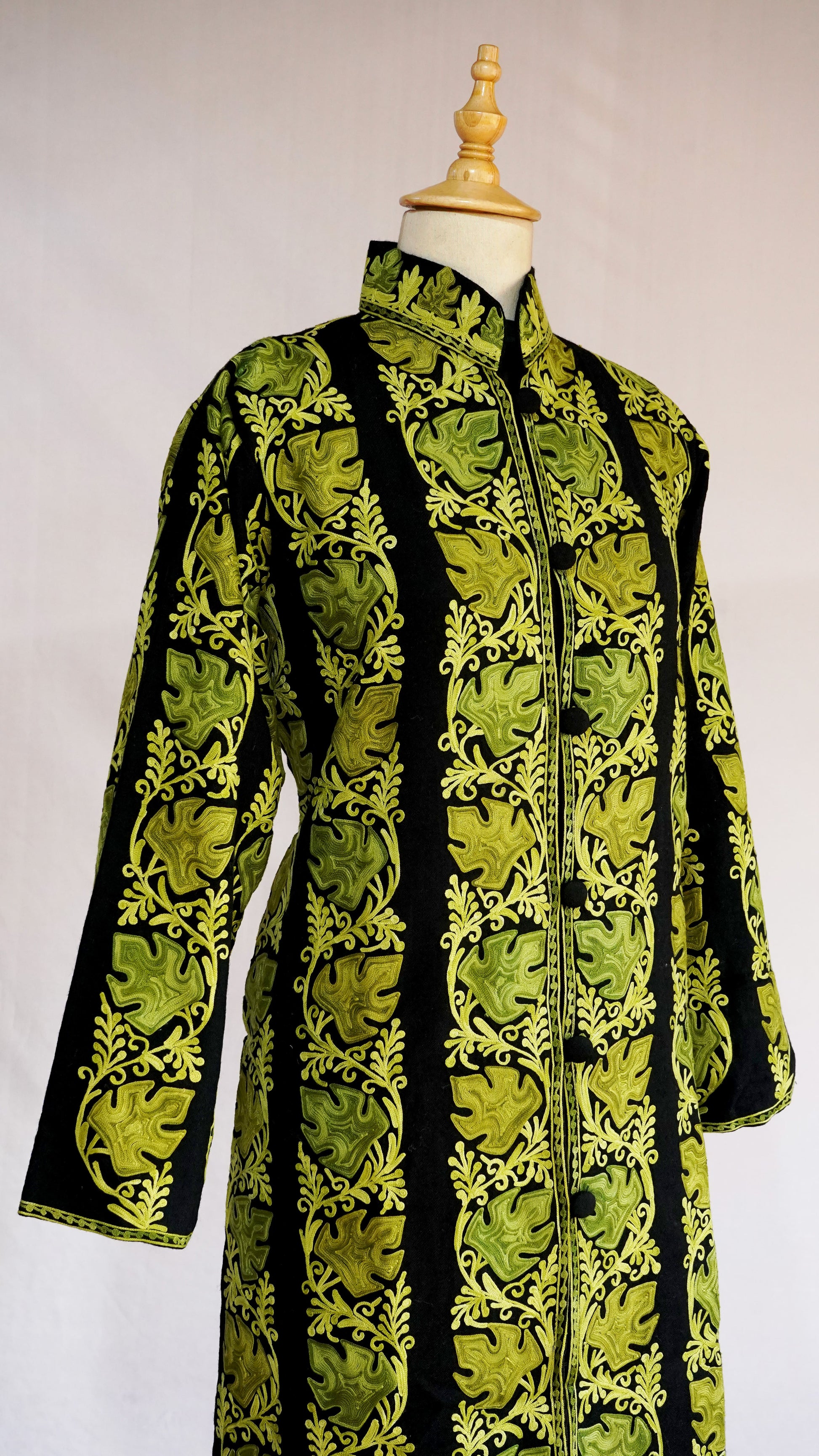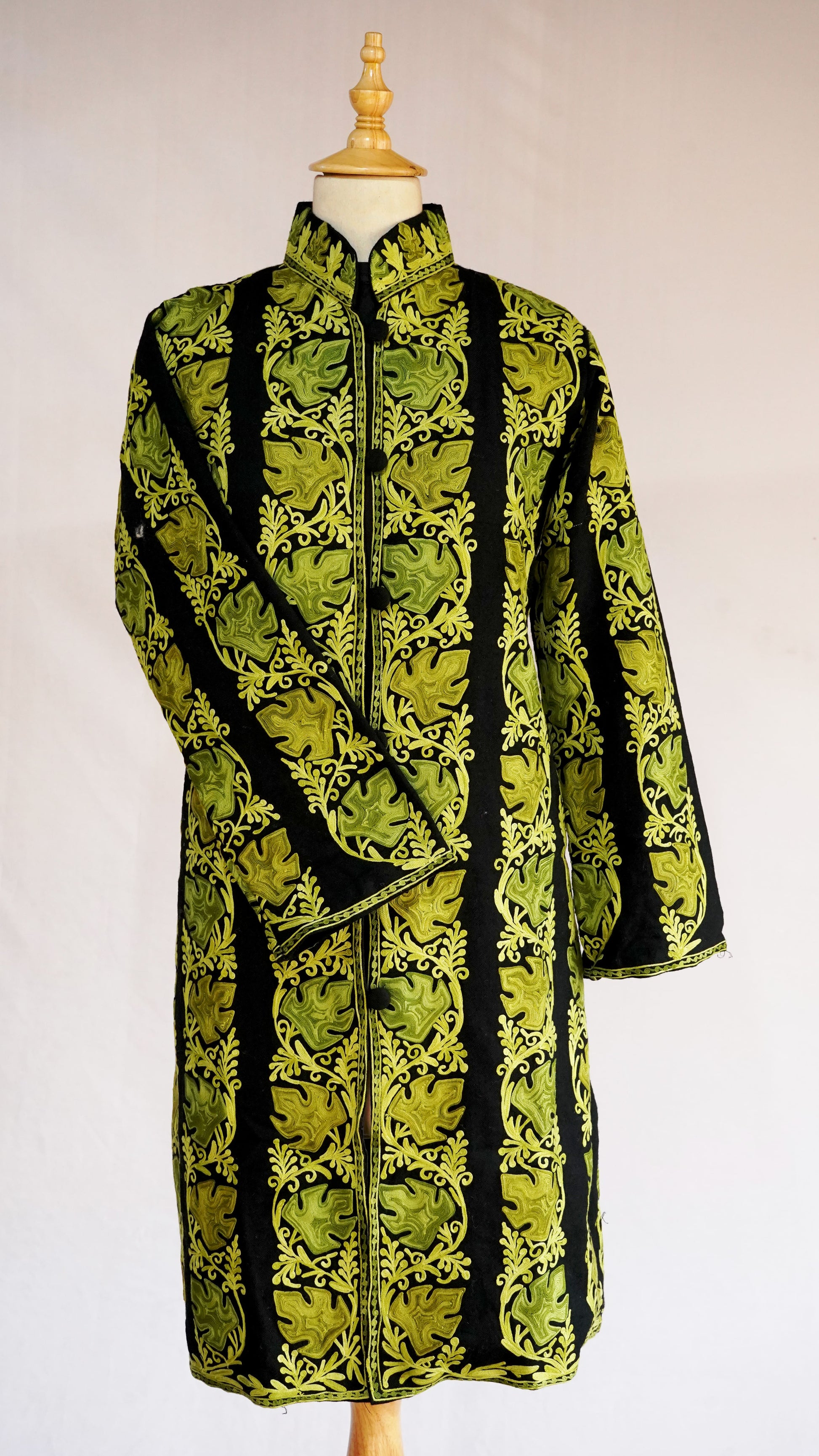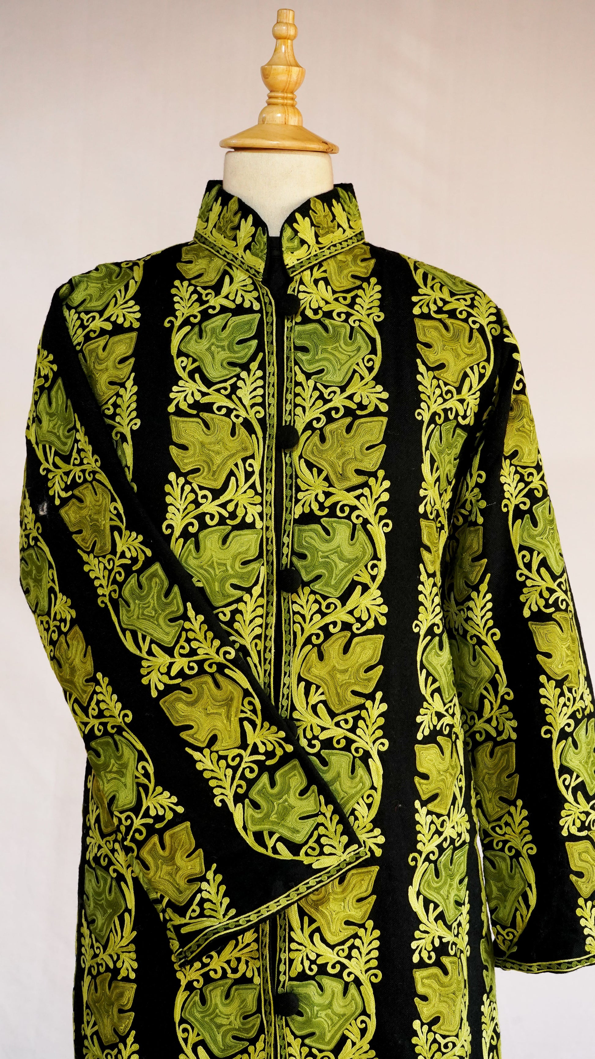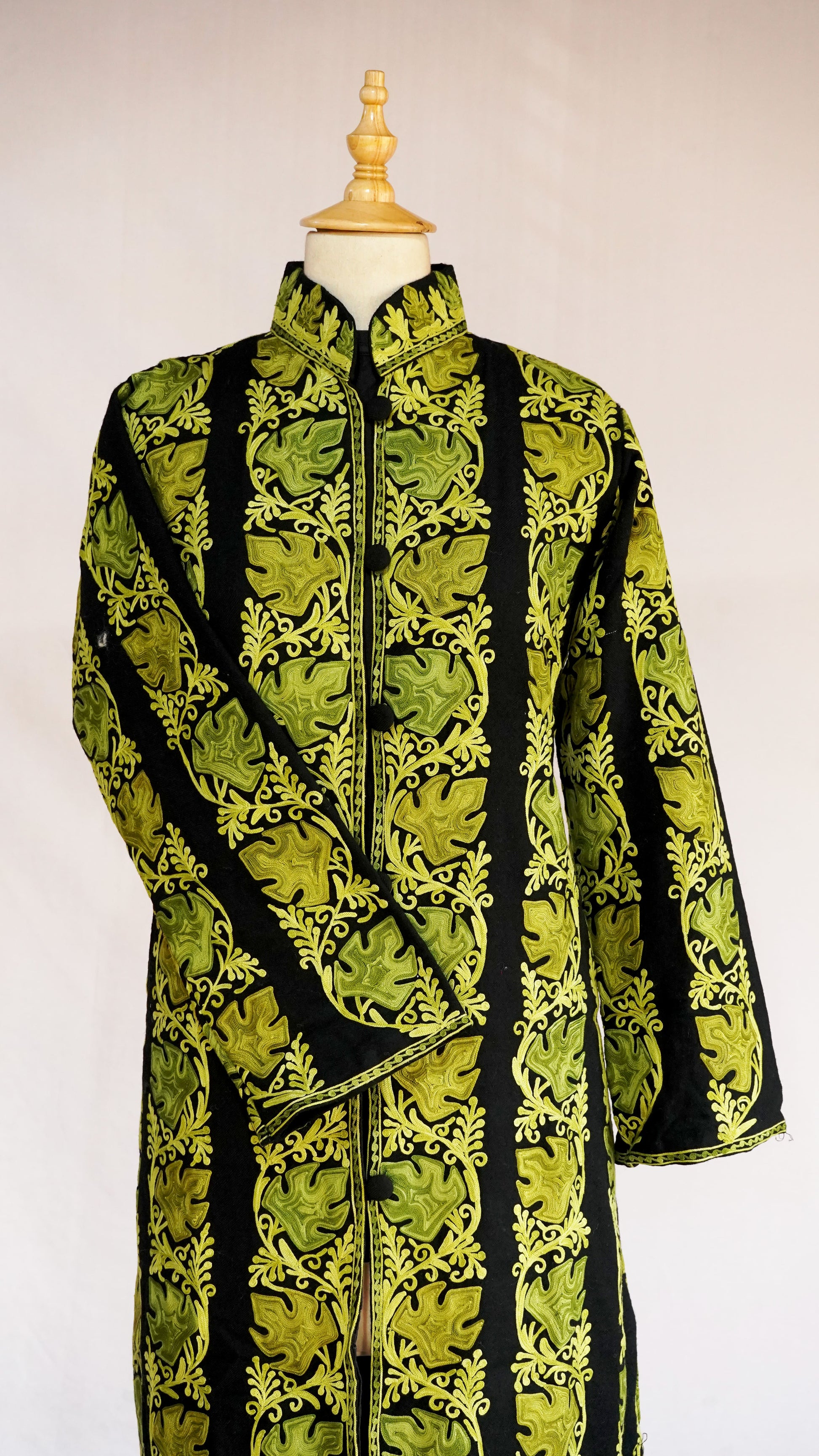 The mandarin collar and long sleeves offer a classic yet contemporary silhouette, while the front button closure adds a touch of modern refinement. This jacket is perfect for grand celebrations and formal gatherings, ensuring you make a statement of unparalleled grace and luxury. Pair it with traditional attire or modern trousers to complete your distinguished look.