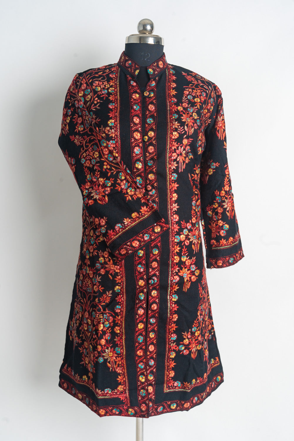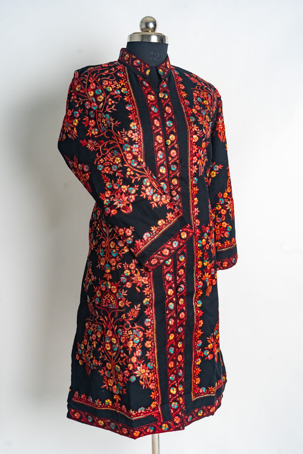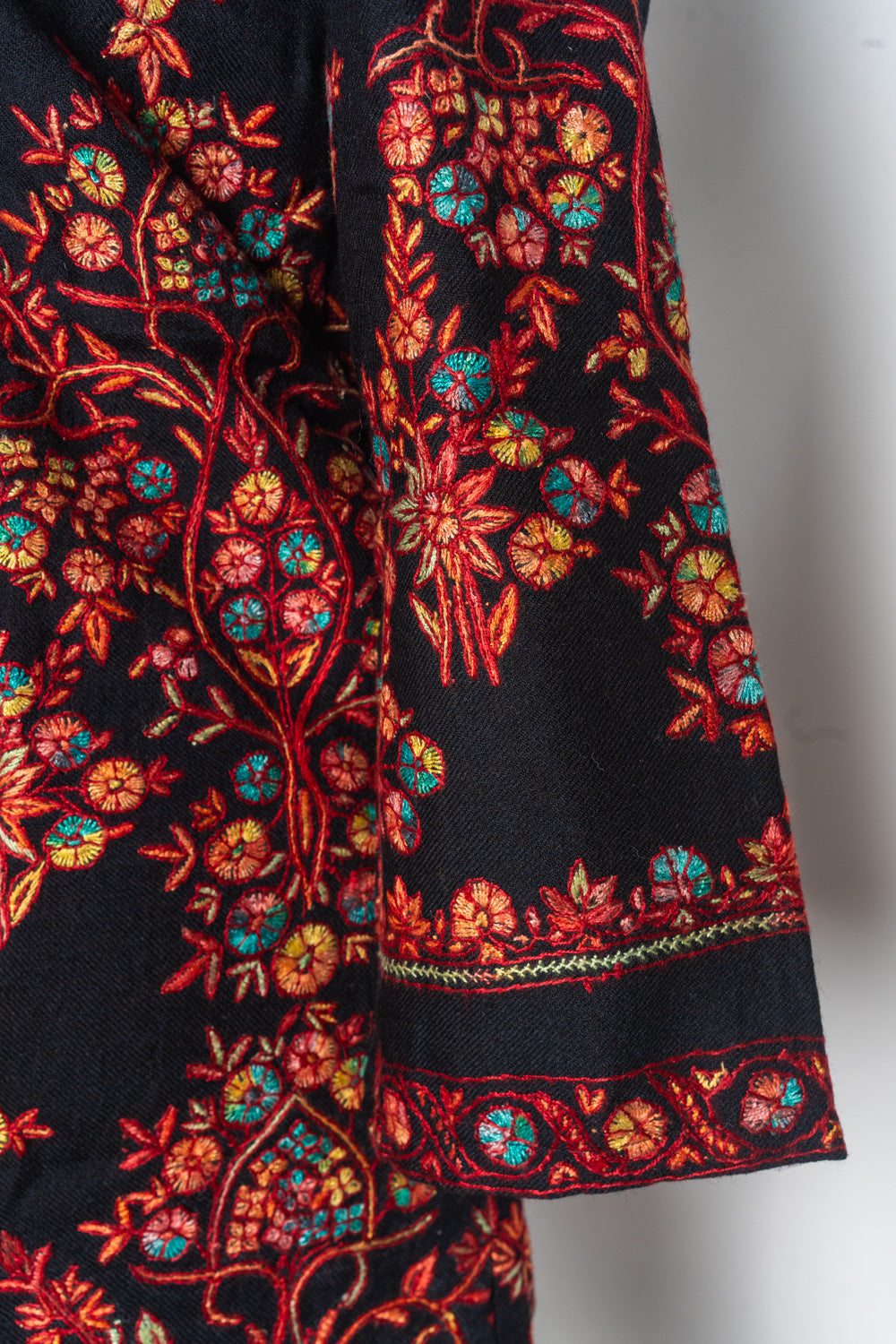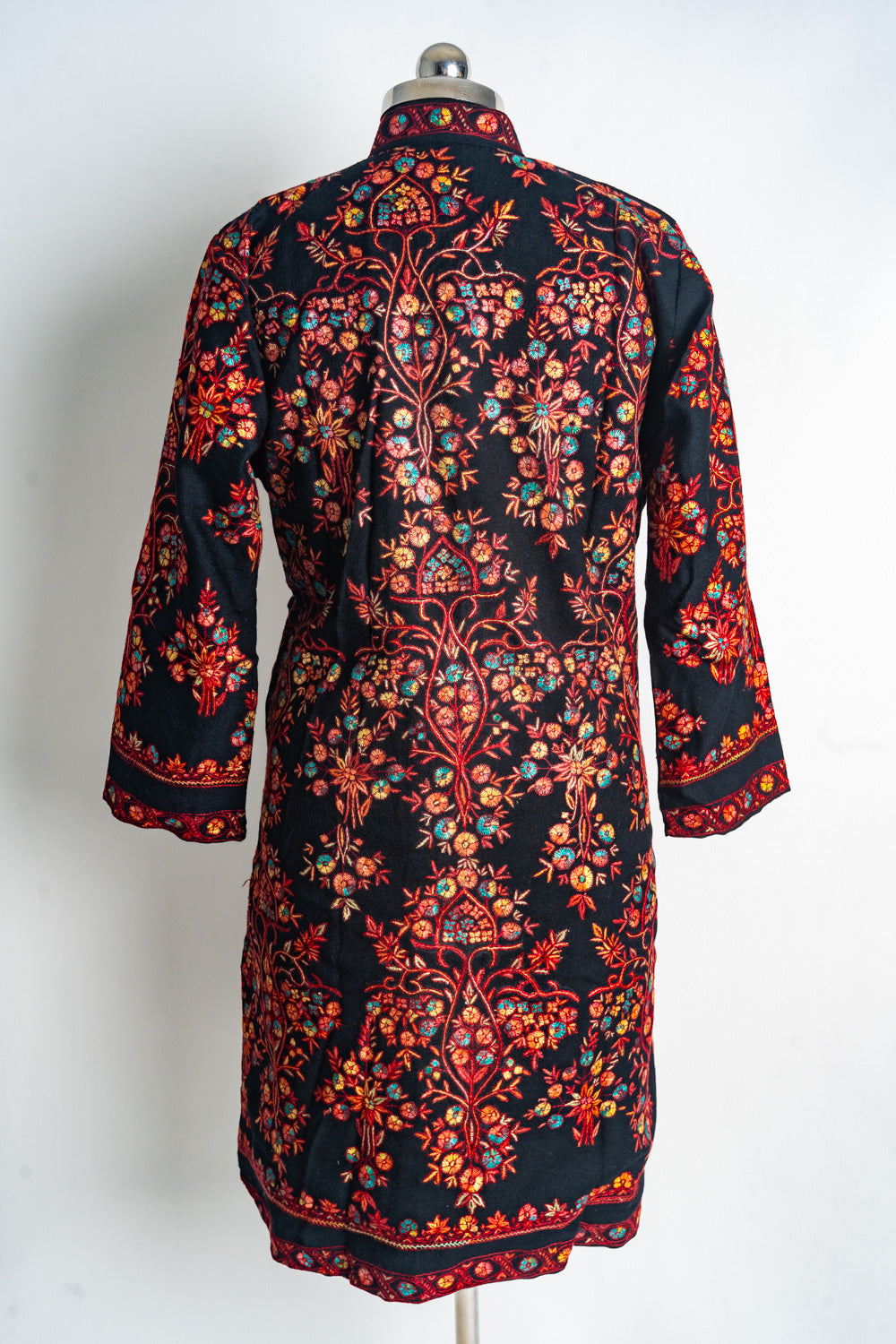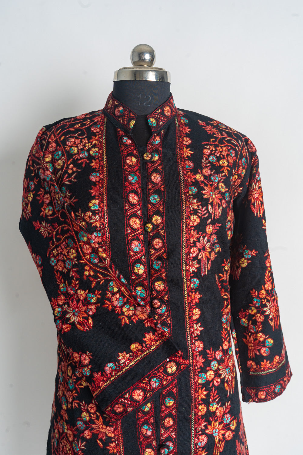 Radiant Night Kashmiri Hand-Embroidery Sozni Long Jacket
