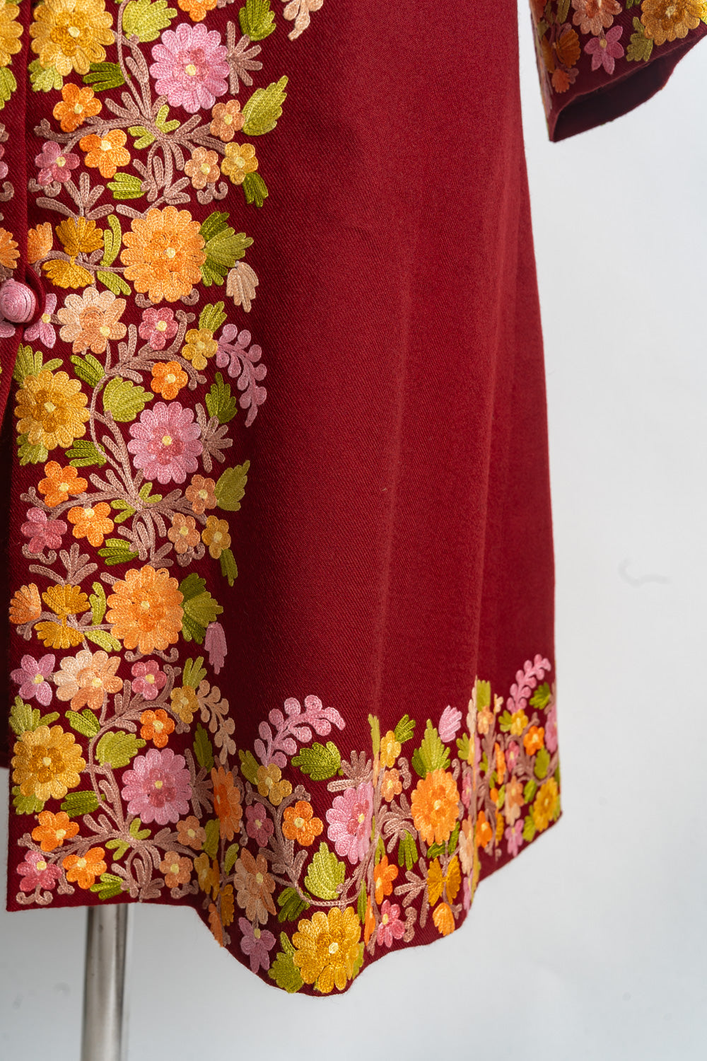 Ruby Blossom Kashmiri Aari Embroidery Long Jacket
