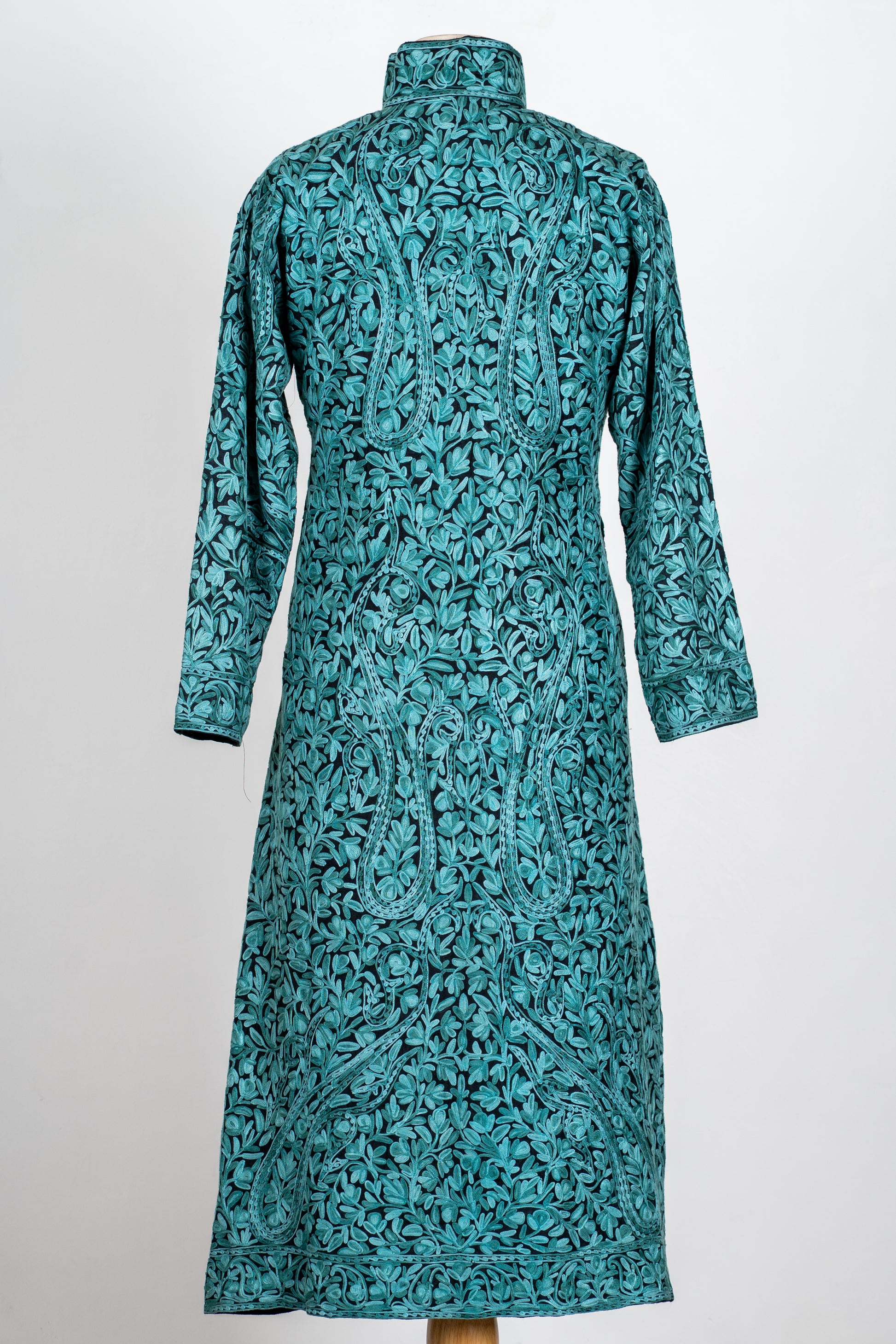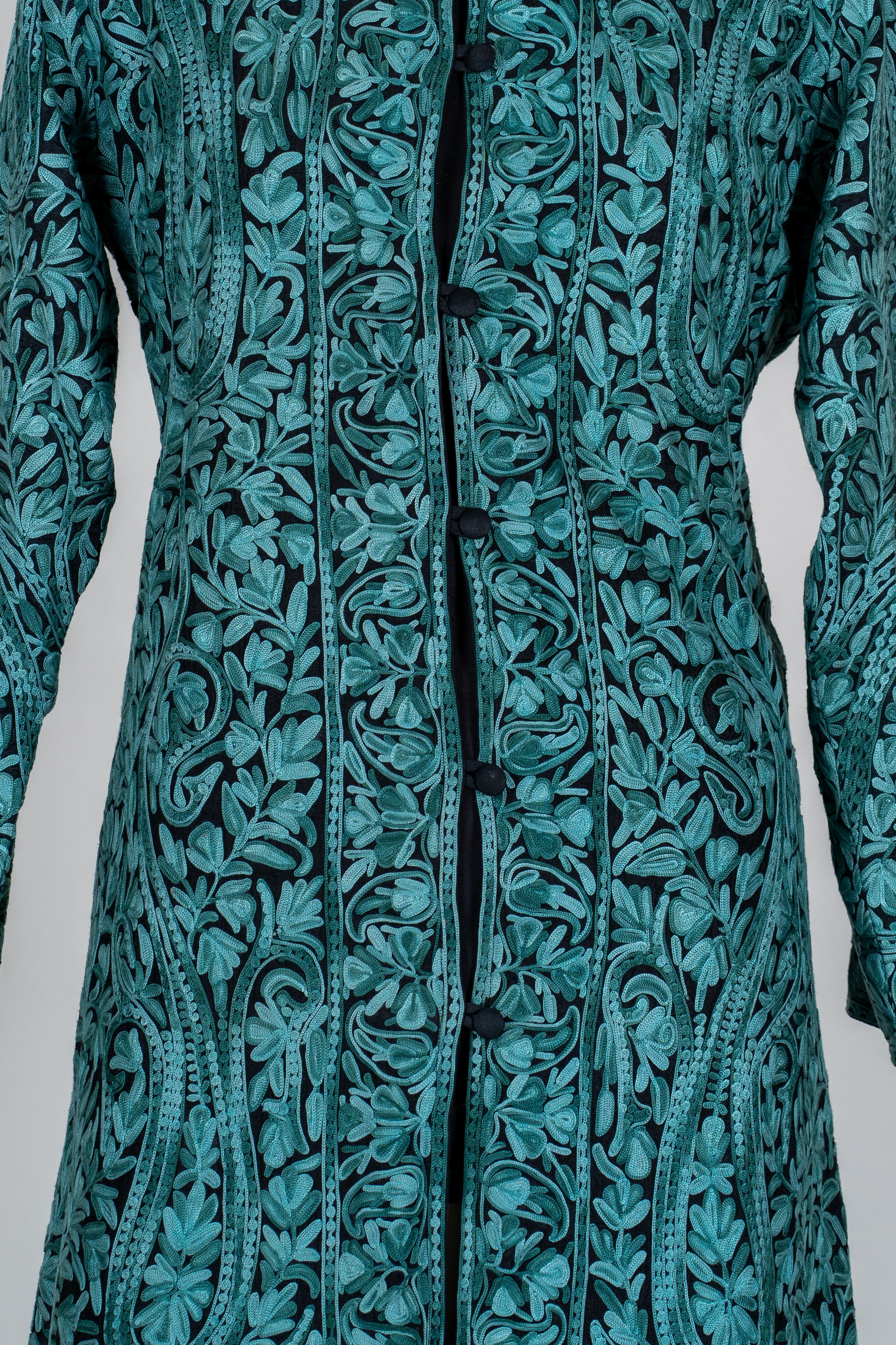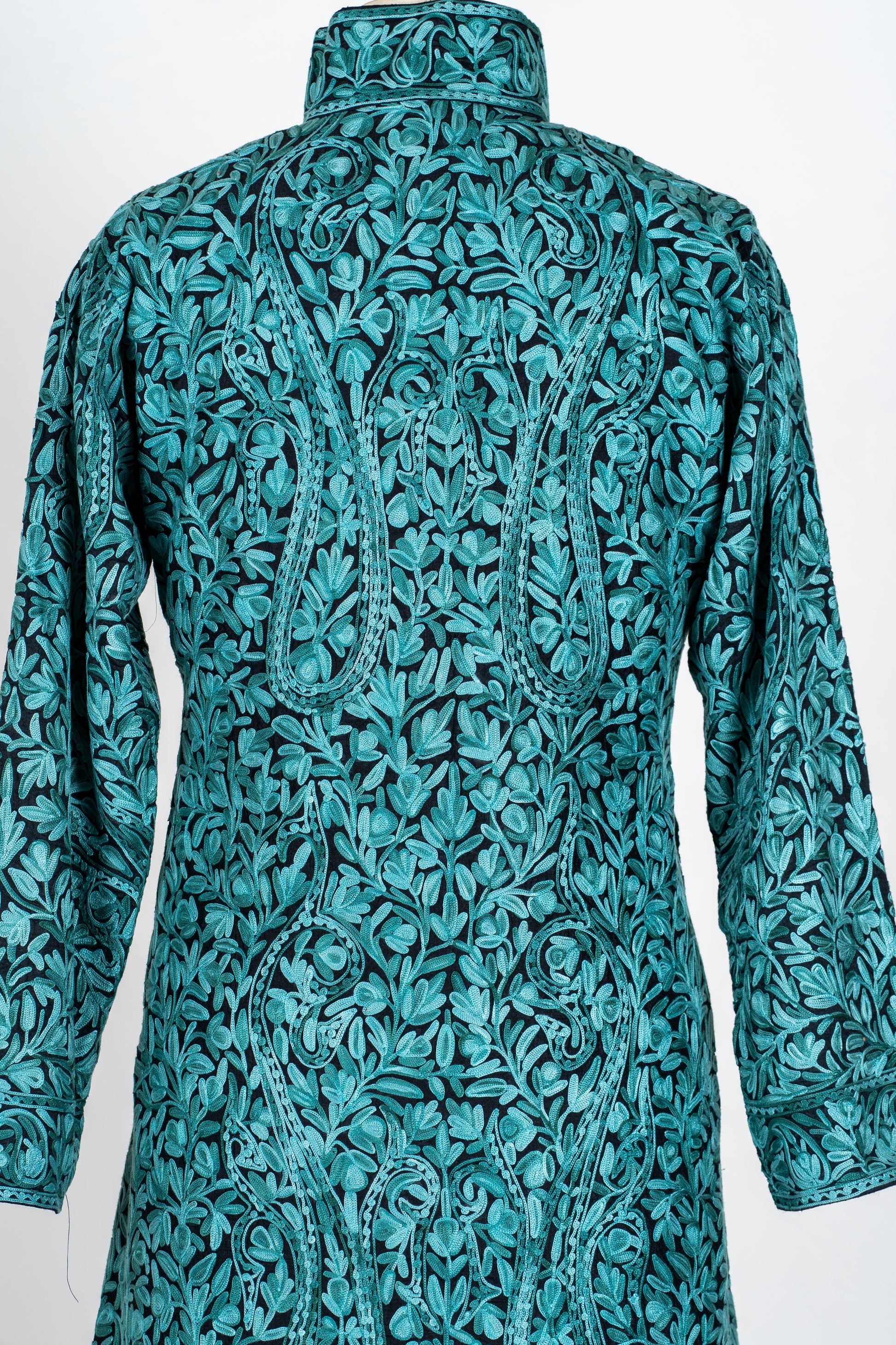 Sheherzaad Teal: Long Jacket with Aari Embroidery
