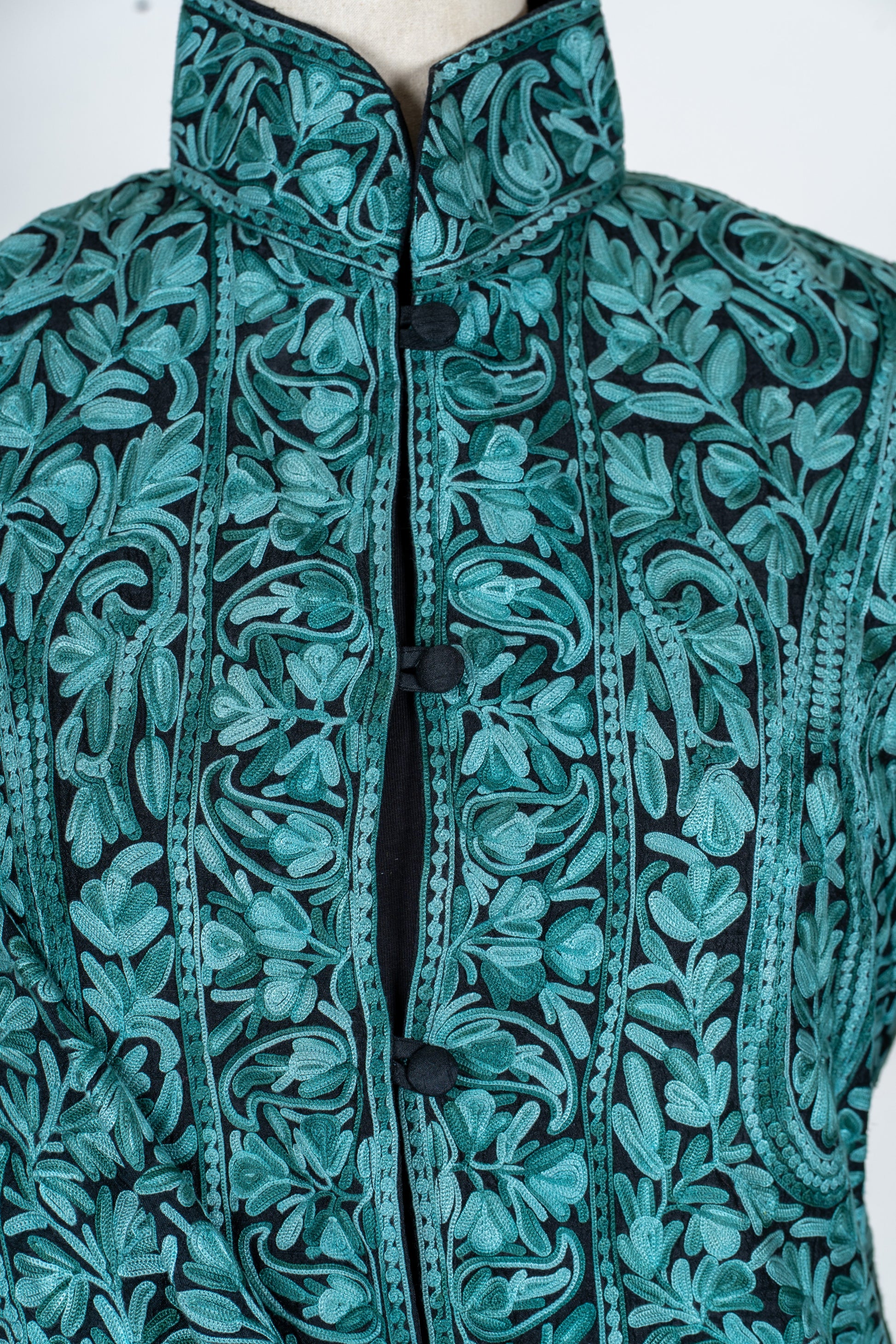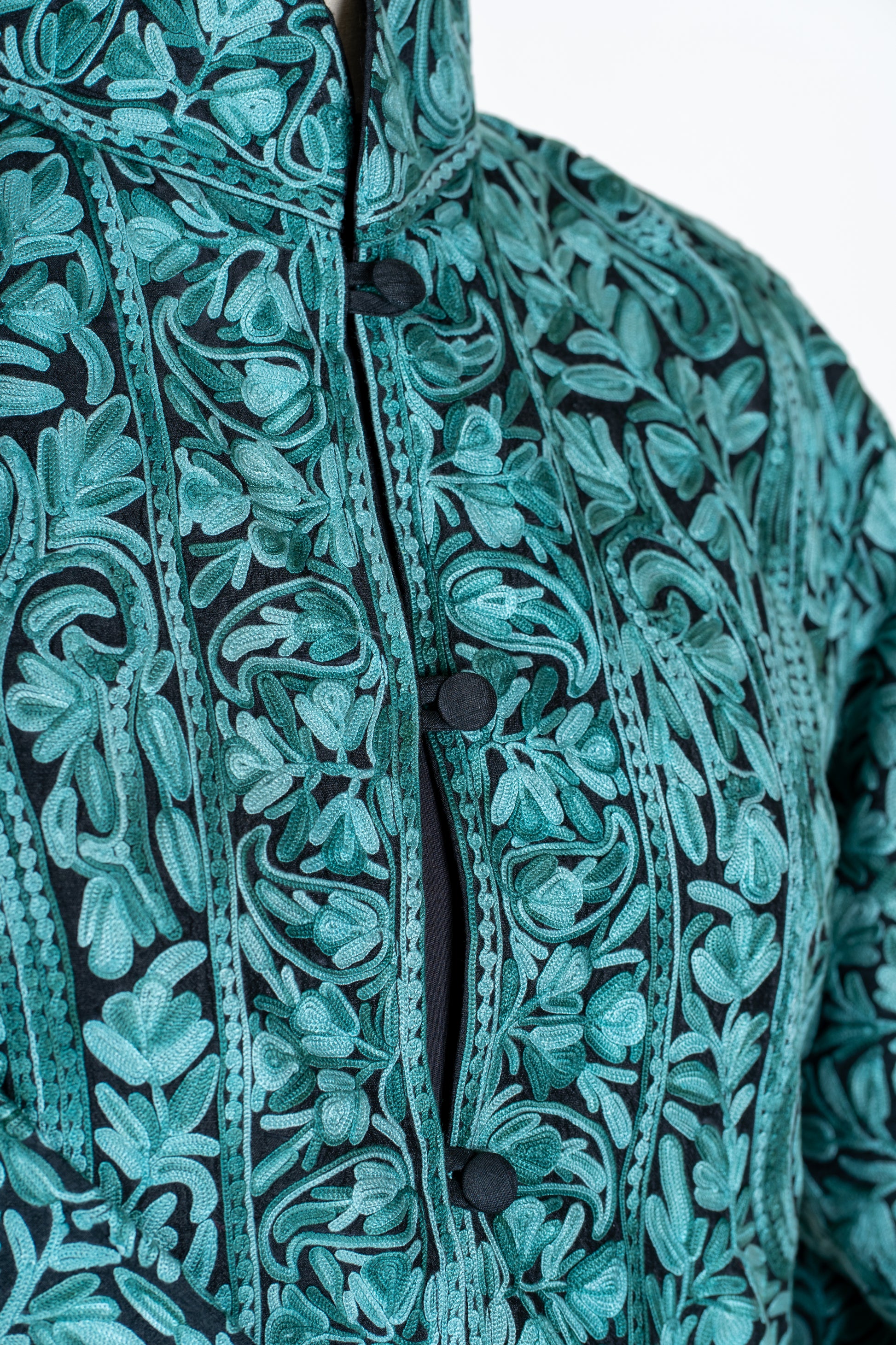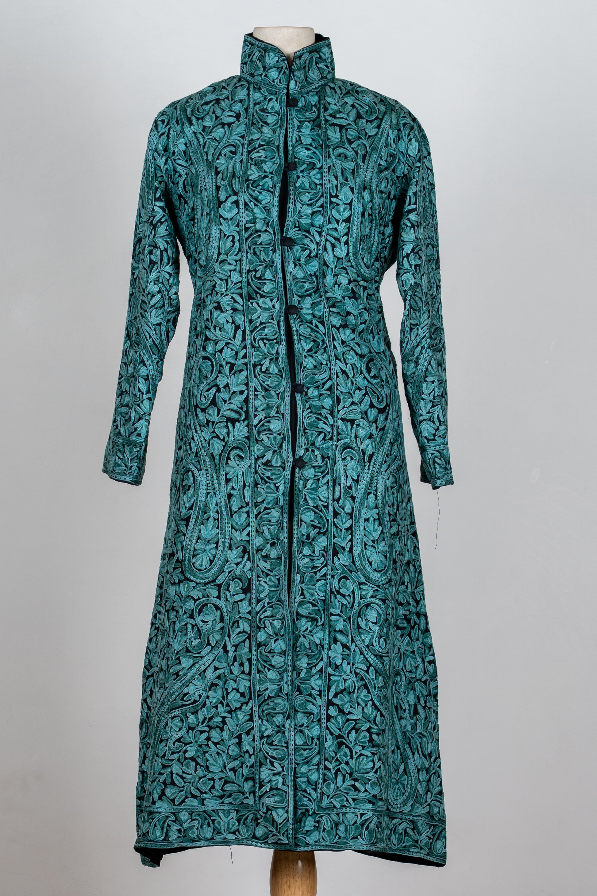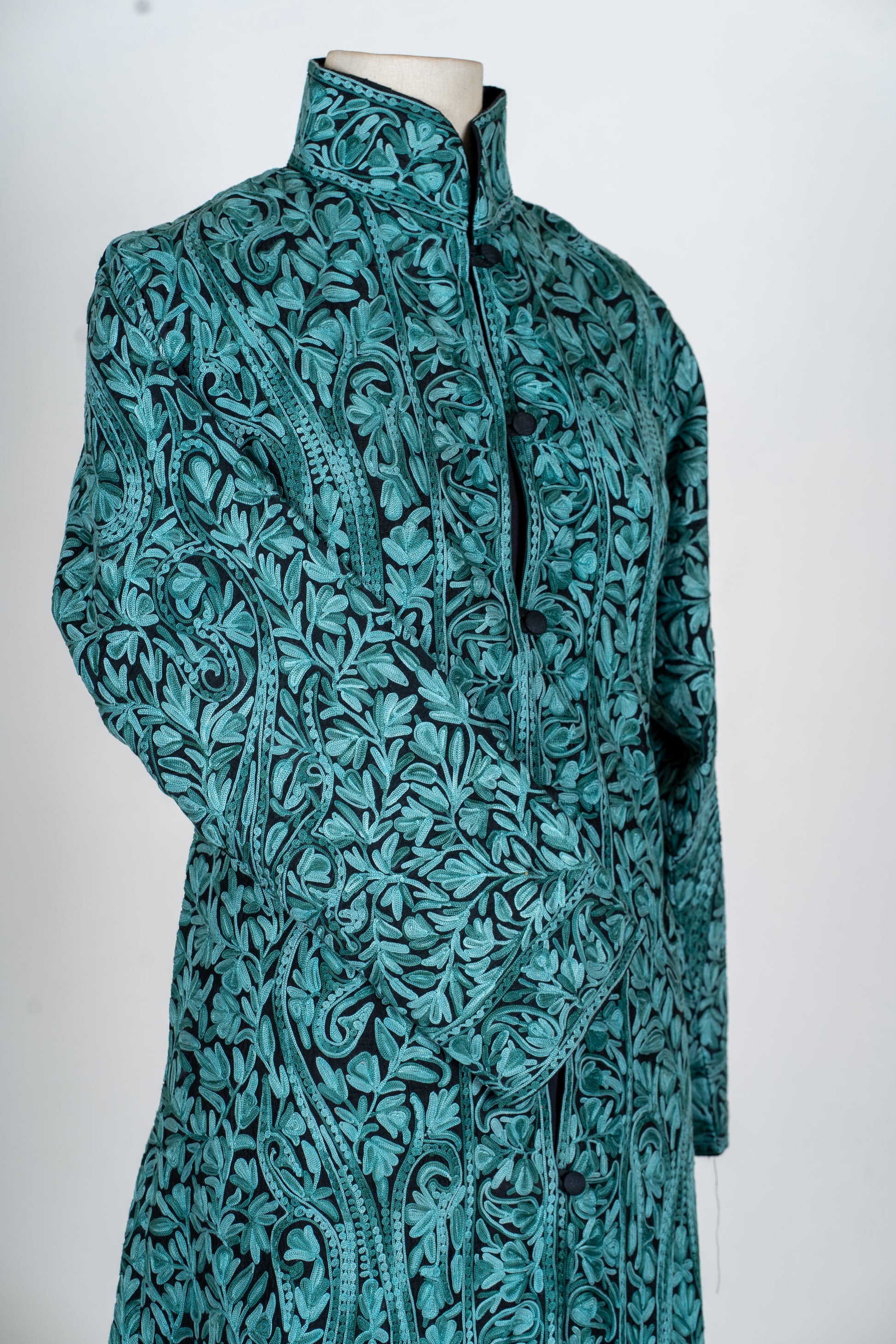 Sheherzaad Teal: Long Jacket with Aari Embroidery