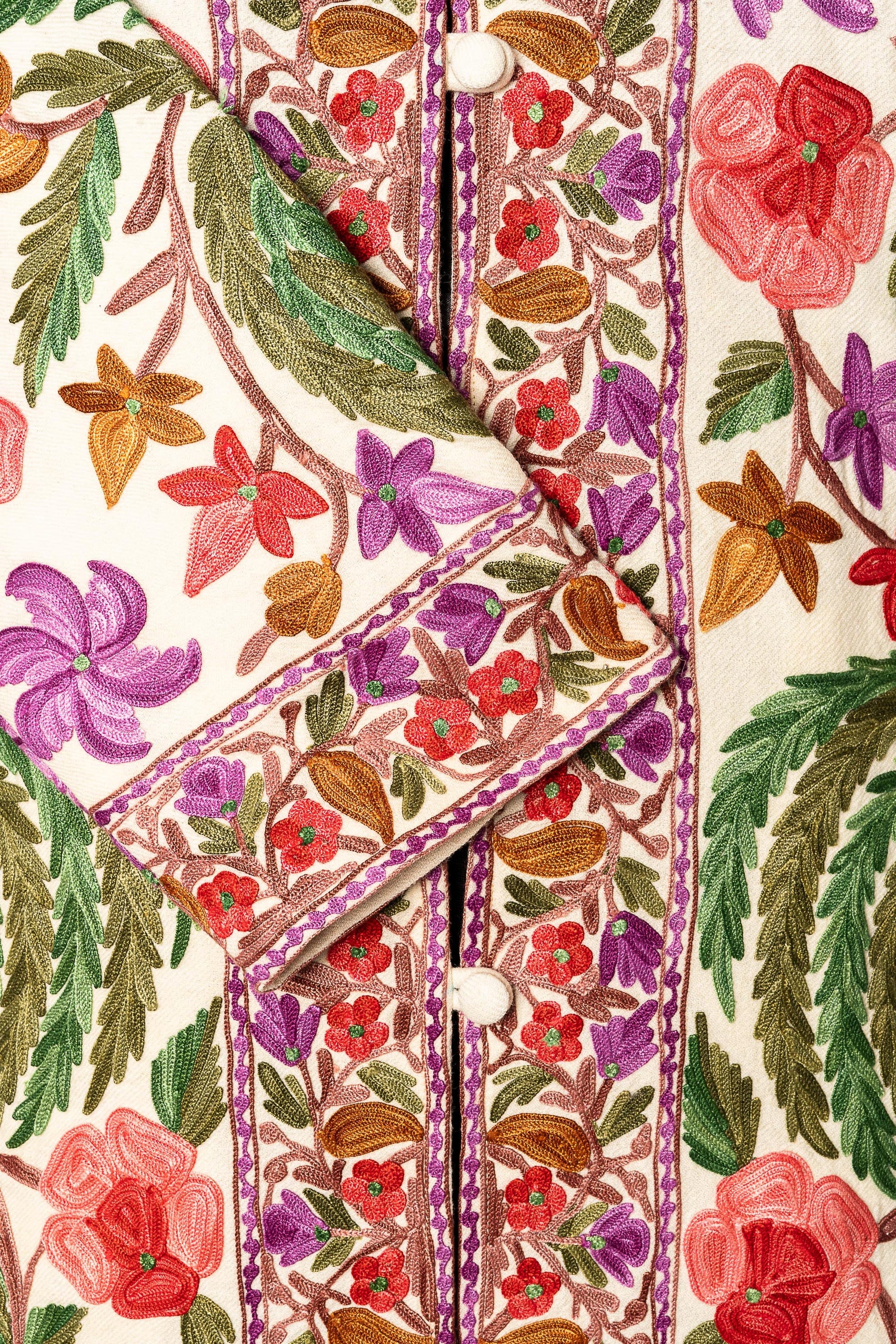 - Pristine white jacket adorned with multicoloured Aari embroidery